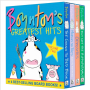 Four familiar Boynton board books: “But Not the Hippopotamus, The Going to Bed Book, Horns to Toes, ” and “Opposites” are packaged in a full-color slipcase. per book.