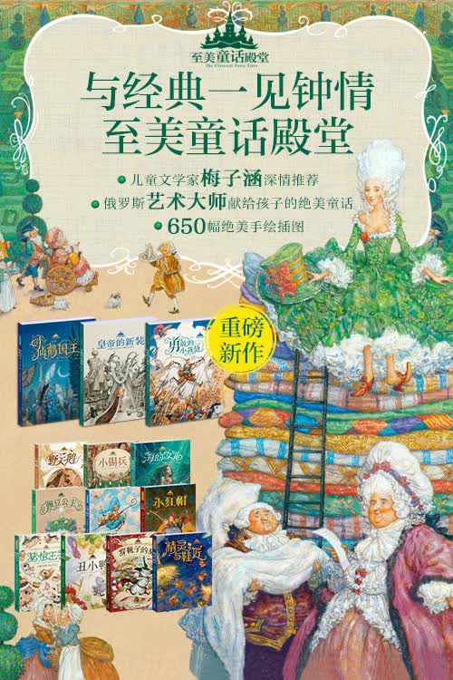 《至美童话殿堂系列》插画每一笔都由安东•罗马耶夫这位真正的艺术家以极其认真的态度与高超的艺术技巧为孩子手绘而成。书籍扉页与环衬的独特设计均出自安东•罗马耶夫之手。每个孩子的童年都应有一个值得回忆一生的绚丽童话世界,那里存放着支撑人类存在的美好与温暖、爱与希望。