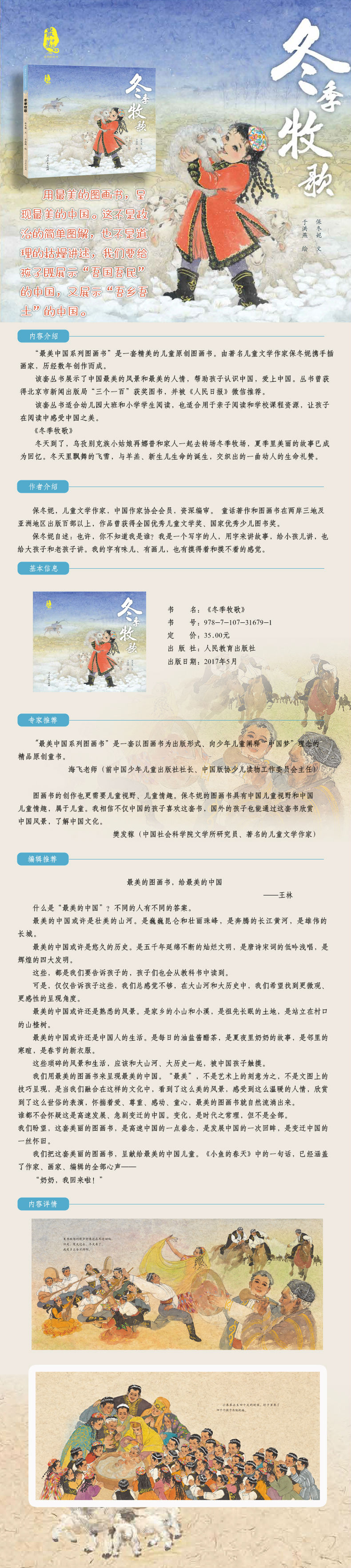 绘本《最美中国系列 保冬妮原创绘本 新疆卷:冬季牧歌》,人民教育出版社