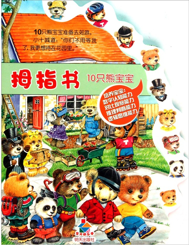 10只熊宝宝准备去郊游。小十喊道:“你们不用等我了,我更想待在花园里。”……《宝贝快乐学拇指书:10只熊宝宝》图文并茂,带给小朋友们更多的知识与欢笑。