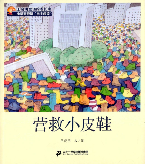 绘本《营救小皮鞋-王晓明童话绘本长廊小草欢歌篇》,21世纪出版社