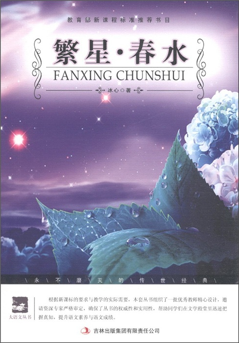 问题与思考 《繁星》和《春水》是作家冰心的诗歌集,主要内容是冰心平时随便记下的“随时随地的感想和回忆”。这两《大语文丛书·语文新课标必读:繁星·春水》含蓄隽永、富于哲理,很受大家的欢迎。