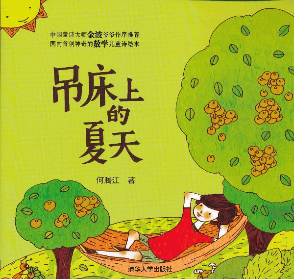 《吊床上的夏天》这本独特的绘本里,有很多很多有趣的数学儿童诗。何腾江用诗意的文字,取代了各种数学“算式”里单调的数字——包括加法、减法、乘法、除法、分数等,使数学儿童诗变得天真、美妙,又富有创意与诗意。这本有趣的绘本,家长应该陪孩子一起读,先看一看图画,再读一读“算式”,然后读一读诗,特别是要发挥想象力,慢慢地就读出诗味,读出趣味了。